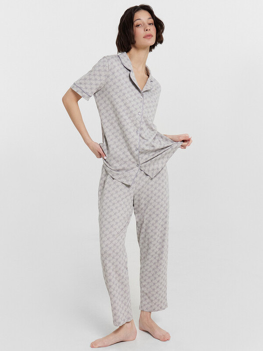 Этот женский домашний комплект — идеальное сочетание комфорта и элегантного дизайна! Рубашка прямого силуэта с отложным воротником, дополненным аккуратным кантом по краю воротника, который добавляет изысканный акцент. Накладной карман на груди делает модель функциональной, а короткие рукава обеспечивают удобную посадку. Центральная застежка с петлями и пуговицами позволяет легко регулировать посадку, а низ рубашки застрочен в подгибку для аккуратного финишного вида.  Бриджи свободного силуэта с эластичной талией создают комфортную посадку, мягко адаптируясь к фигуре. Нижние края обработаны швом вподгибку, что гарантирует долговечность и эстетичность изделия. Комплект выполнен из хлопковой кулирки — мягкого, воздухопроницаемого материала, который приятно прилегает к коже и обеспечивает комфорт на весь день. Отличный вариант для отдыха дома, легких вечерних прогулок или уютных моментов! Этот комплект сочетает в себе стиль, удобство и качественные материалы, создавая безупречный образ для повседневного комфорта.