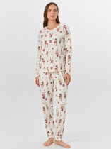 Комплект женский состоит из жакета и брюк. Жакет свободного силуэта. Рукав втачной короткий, рукав обработан вподгибку. Срезы борта обработаны подбортом из основного полотна. Жакет с центральной застежкой с петлями и пуговицами. По боковым швам разрезы. Низ застрочен швом в подгибку. Брюки свободного силуэта. Пояс цельнокроеный, с резиной внутри. По боковым швам разрезы. Низ брюк обработан вподгибку.