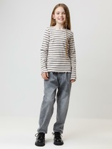 Лонгслив для девочек, прямого силуэта. Горловина округлой формы, из рибаны. Шов втачивания рибаны закрыт бейкой из основного полотна. Плечо спущено, рукав втачной длинный. Низ изделия и рукавов обработан швом в подгибку на двухигольной плоскошовной машине.
