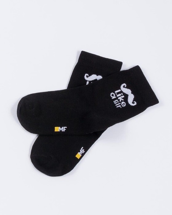 Рис. 356. Гладкий детский носок с рисунком в виде усов и надписи Like a sir на паголенке