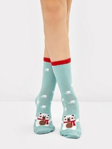 рис.3179 Детский укороченный носок с рисунком в виде лапок и мишек с элементом пикота.