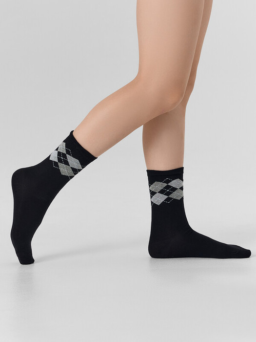 рис.1493 Детский носок гладкий с рисунком в виде ромбиков на паголенке.