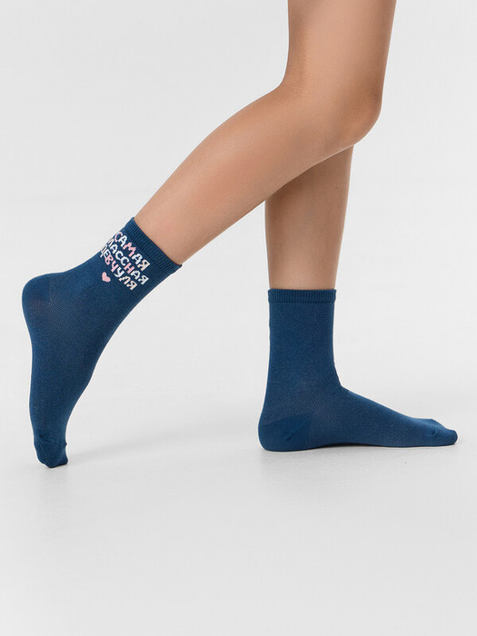 рис.3061  Детские классические носки с рисунком в виде надписи "Самая классная девчуля".