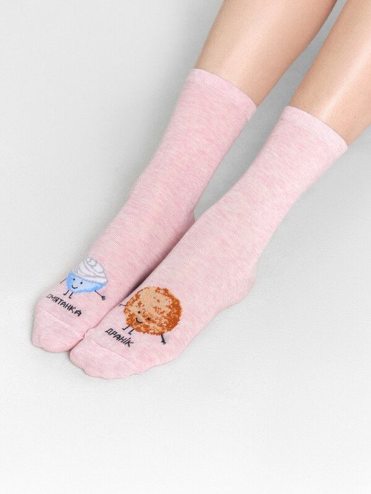рис.3082  Детские классические носки с рисунком в виде драника и сметанки.