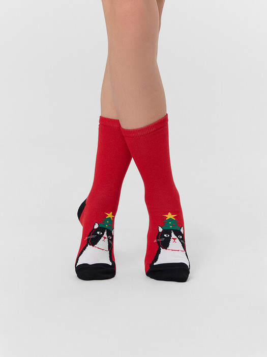рис.3445  Детские классические носки с рисунком в виде кота.