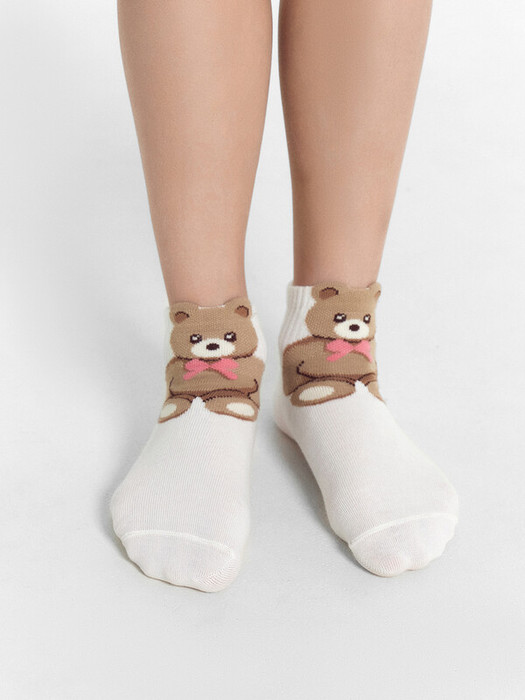 рис.2793 Гладкий детский носок с резинкой, средней высоты и объемным рисунком в виде медведя.