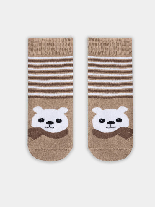 рис.2883 Детский махровый носок с рисунком в виде медведя и полосок.
