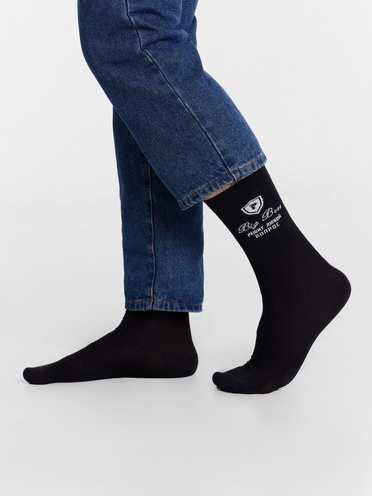 рис.3025 Мужской носок классический, высокий, с рисунком в виде эмблемы и надписью "BIG BOSS, решит любой вопрос".