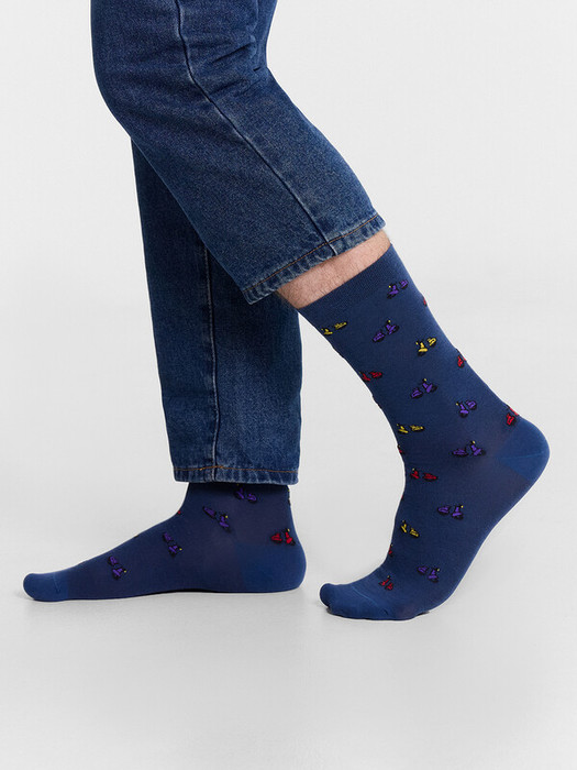 рис.3046 Мужской носок классический, высокий, с рисунком в виде мотоциклов.