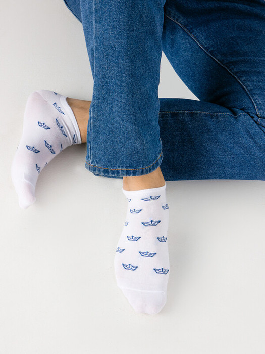 рис.2825 Укороченный мужской носок с рисунком в виде оригами-корабликов.