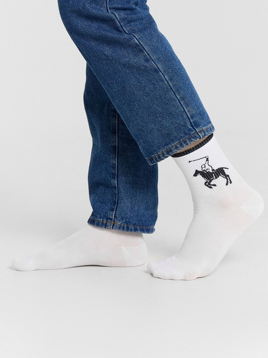Рис.3107. Мужские носки, средней длины с резинкой на поголенке и рисунком в виде всадника на лошади и цветной полоской на бортике.