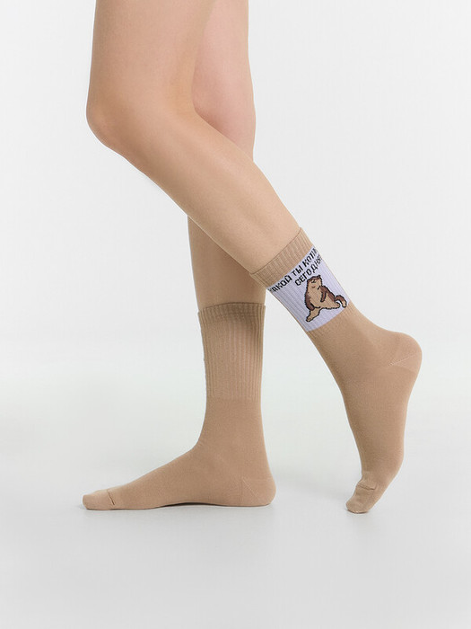 рис.2868 Женский носок с высоким плотным бортом, а также с рисунком в виде надписи и кота.