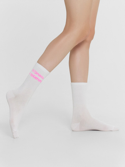 рис.2900 Женский носок с  высоким плотным бортом и рисунком в виде надписи "Встречаюсь с проблемами".