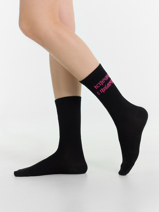 Высокие классические носки женские с плотной резинкой и рисунком в виде надписи "Встречаюсь с проблемами". Выполнены из высококачественного гребенного хлопка - тонкого, прочного и эластичного. Натуральные волокна отлично пропускают воздух и впитывают влагу, обеспечивают ощущение комфорта в течение дня. Благодаря небольшому количеству эластана в составе, носочки хорошо облегают и сохраняют форму, практичны и долговечны. Пятка и мысок дополнительно усилены для защиты от протирания при активном движении. Резинка мягко, но надежно удерживает носки, не передавливая ногу и не оставляя на коже следов. Отличный вариант для зимних дней и новогодних праздников. Нежные, достаточно теплые и мягкие, создадут атмосферу тепла и уюта. Порадуйте себя и своих близких прекрасными носочками от Mark Formelle!