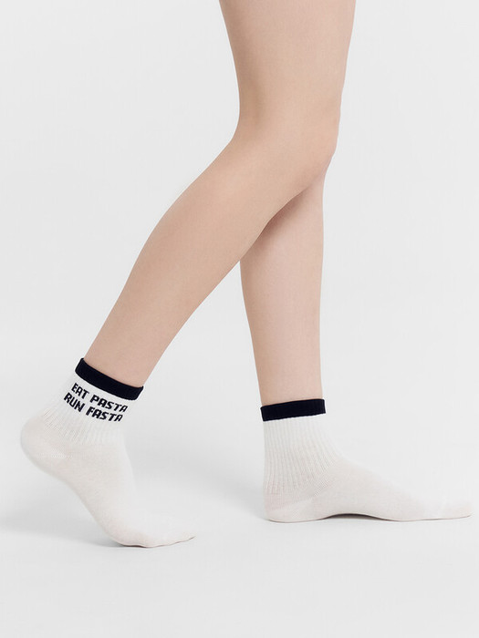 рис.2759 Женские носки средней высоты, с плотным бортом с рисунком в виде надписи EAT PASTA, RUN FASTA и цветного бортика.