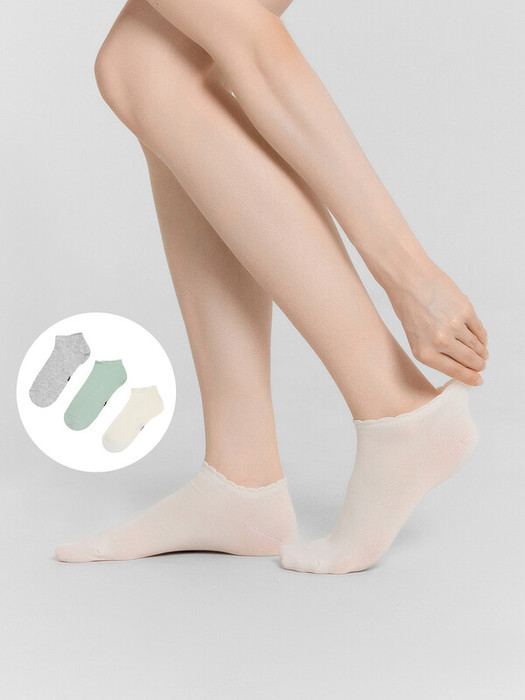 рис.3122 Мультипак из трех пар женских однотонных укороченных носков c пикотом на борту.