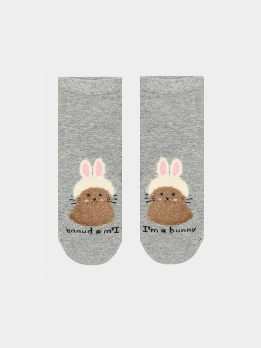Носки укороченные женские с рисунком в виде зайки - незаменимая вещь в гардеробе, самостоятельный стильный атрибут и возможность подчеркнуть свою индивидуальность. Носки утепленные, с плюшевым следом. Носки с принтом женские модные сегодня можно носить не только с брюками и спортивной обувью. Смело надевайте их с юбками, платьями и легинсами, сочетайте со слипонами, лоферами, классическими лодочками, даже с босоножками и шлепанцами. Носки женские с принтом изготовлены из качественных натуральных и синтетических волокон и обязательно придутся по душе людям, ищущим комфорт и мягкость. Материал отлично пропускает воздух, позволяя коже дышать, плотно, но нежно облегает ногу и долго носится. Любимые носки с принтом женские надолго сохранят яркость цвета, рисунок на них не потускнеет и не деформируется.