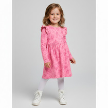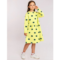 Платье для девочек свободного силуэта. Рукава втачные длинные, с отрезными манжетами из рибаны. Плечо слегка спущено. Горловина округлый формы с обтачкой из рибаны. Низ изделия обработан рибаной .