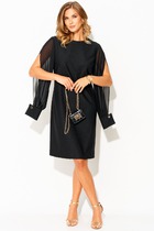 Спинка и перед состоят из трех частей : верхней,средней,нижней.В нижней части платья боковые разрезы . Горловина круглой формы.