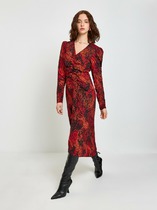 Женское полуприлегающее платье длиной выше колена из нежной и легкой вискозы. Модель отрезная по талии, внутри пояса проходит эластичная тесьма, образующая сборочки. Горловина круглая, рукава короткие и расширенные к низу. Нижний край платья украшен рюшей. На спинке застегивается на потайную молнию. Стильное платье для ваших летних образов!