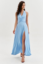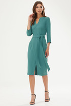 Женское платье полуприлегающего силуэта из трикотажной рибаны. Вырез круглой формы с воротником-стойкой. Рукава длинные, расширяются к низу и завершаются разрезом. Длина платья – мини, силуэт А-образный. Красиво!