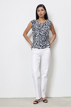 Горловина круглой формы, окантована бейкой из основного полотна.