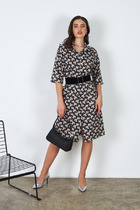 Асимметрия подчеркнута и в рукавах: один плотно облегает руку, а второй спущен с плеча, создавая ощущение легкой небрежности. Драпировка по горловине и на передней детали, зафиксированная силиконовой лентой, добавляет платью динамики и объема.