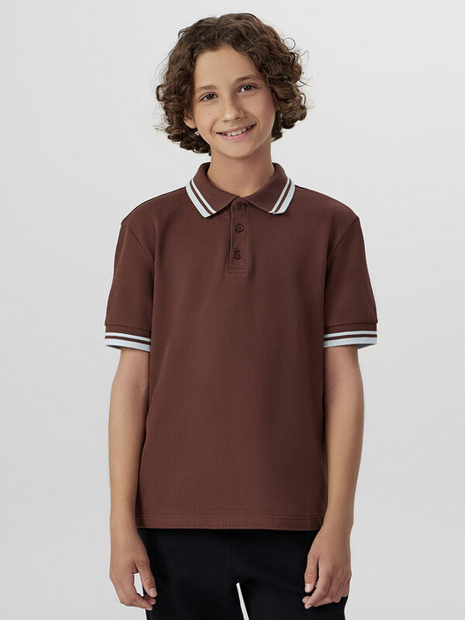 Поло свободного силуэта, перед и спинка цельнокроеные. По переду обработана застежка «поло» на 3 петли и пуговицы (d=10мм). Горловина с воротником стойкой из довяза DVС-100/001-0/5. Рукав втачной, одношовный, плечо спущено. Низу рукава - довяз DM2С-35/001-0/5. Низ изделия обработан швом в подгибку.