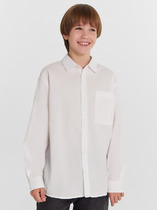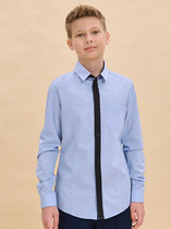Рубашка для мальчиков прямого силуэта с воротником. По переду обработана застежка на пуговицу d=10mm и петли. На правой детали переда накладной карман. Рукава короткие, втачные, слегка спущены. Нижние срезы изделия и рукавов обработаны швом в подгибку.