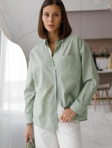 Блузка женская удлиненная прямого свободного силуэта из ткани. Блузка с цельнокроеной планкой и центральной застежкой на пуговицы.