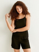 Укороченный сарафан А-силуэта с женственным акцентом идеально сочетает в себе удобство для сна и изящные романтичные детали.