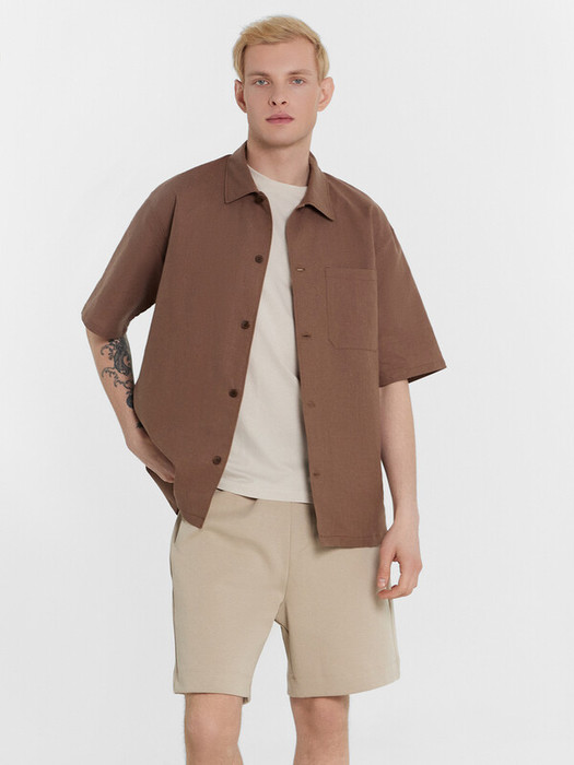 Шорты изготовлены из трикотажного полотна интерлок. Шорты свободного силуэта. Длиной выше колена. Пояс  отрезной с эластичной тесьмой внутри. С внутренней стороны пояса пробиты петли и вставлен шнур с застр. концами. На левой детали переда проложена строчка - имитация гульфика. В боковых швах обработаны карманы. Нижние срезы шорт обработаны швом вподгибку.