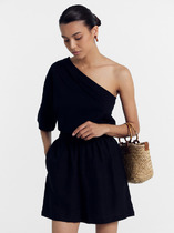 Шорты свободного силуэта из легкого трикотажного футера. Широкий эластичный пояс с тесьмой внутри и декоративными строчками. Есть удобные боковые карманы. Рекомендуем!