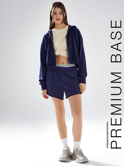 Шорты прямые, короткие. Посадка средняя. Пояс цельнокроеный с эластичной тесьмой внутри (вн. 40мм 40RV). В боковых швах обработаны карманы. Подкладка карман из основного полотна. Нижние срезы шорт с «сырым срезом».