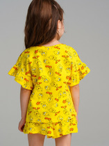 Сорочка для девоччки прямого свободного силуэта. Горловина круглой формы, обработана обтачкой из основного полотна. Рукава втачные длинные, линия плеча спущена. Низ изделия и рукавов обработан на 2-х игольной плоскошовной машине швом в подгибку.