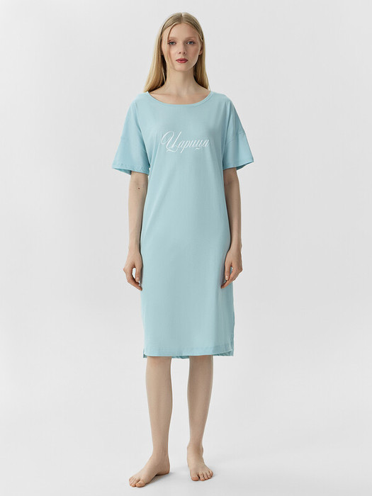 Ночная сорочка из великолепного хлопкового полотна. Силуэт свободный, длина до колена. Короткие рукава, круглый вырез горловины, разрезы по бокам. Привлекательная и уютная модель