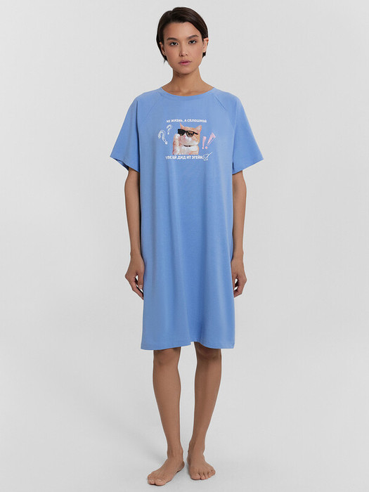 Эта женская сорочка прямого силуэта — удобный и универсальный элемент гардероба, идеально подходящий для повседневной носки и комфортного отдыха. Круглая горловина добавляет лаконичности в дизайн, а короткие рукава обеспечивают свободу движений и удобство. Нижний срез сорочки и рукавов обработан швом вподгибку, что придает изделию аккуратность и долговечность. Выполненная из смесового эластичного хлопка, модель обладает мягкостью, воздухопроницаемостью и эластичностью, обеспечивая комфорт в течение всего дня. Практичный и стильный вариант, который можно легко сочетать с другими элементами домашнего гардероба!