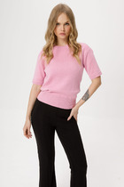 Свитшот прямой, свободный. Горловина круглой формы обработана обтачкой из рибаны. Рукава втачные длинные, с отрезными манжетами. Плечо спущено. По низу отрезной пояс. Пояс и манжеты из рибаны.