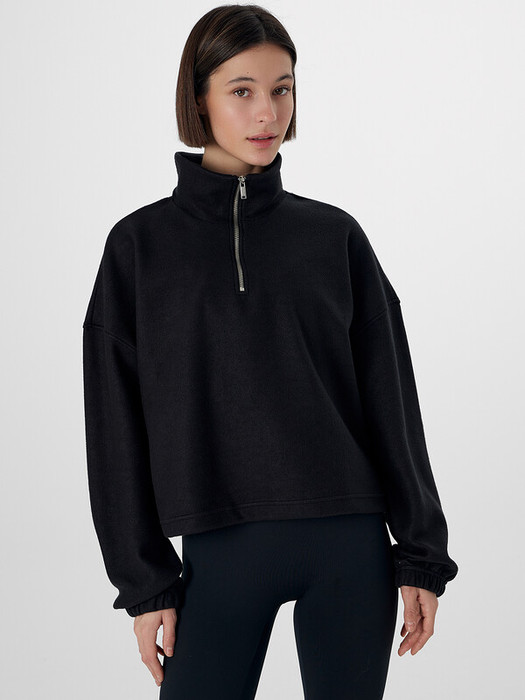 Свитшот из мягкого флиса подарит ощущение тепла и уюта в прохладные дни. Свободный силуэт со спущенным плечом и углубленной проймой обеспечивает комфорт и полную свободу движений.