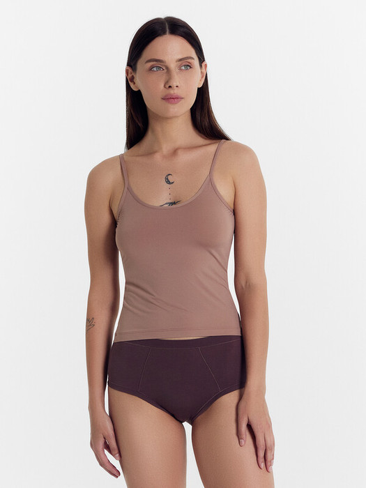 Топ женский из микрофибры на тонких бретелях из основного полотна с эластичной тесьмой внутри.