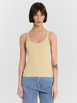 Стильный топ на тонких бретелях. Выполнен из хлопковой трикотажной рибаны в рубчик. Особенность модели – закрученный нижний срез. Идеальное решение для теплого времени года!