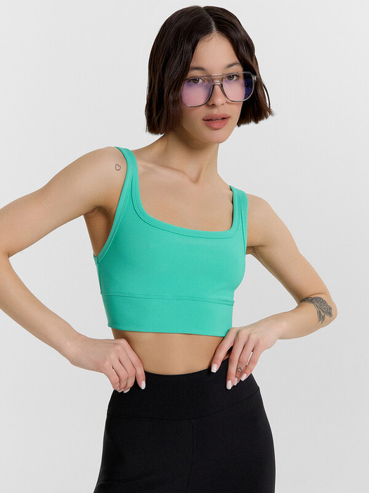 Топ облегающего силуэта, укороченный. Горловина формы каре.