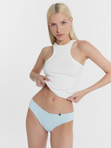 Трусы женские, средняя линия  талии, силуэт - слипы. Передняя и задняя детали выполнены из рибаны. Верхний срез трусов обработан бейкой поперечной из рибаны, внутри жилка 6мм. Нижние срезы обработаны бейками поперечными из рибаны. Подкладка ластовицы из хлопка, отлетная по верхнему срезу.