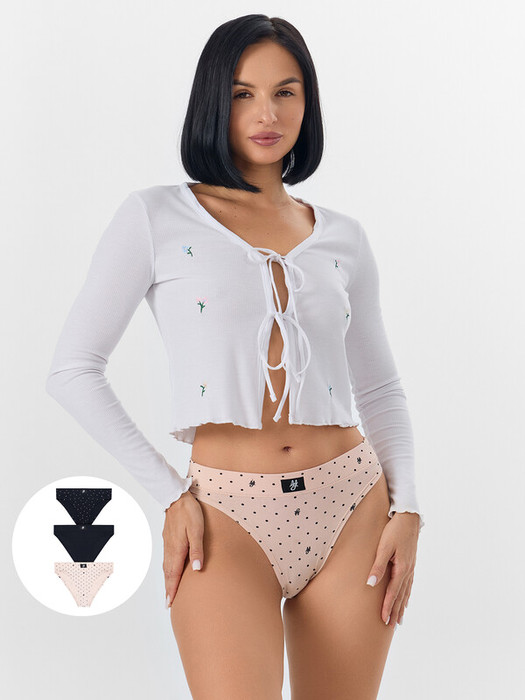 Совместные покупки Курган Женская одежда Трусы — Mark Formelle ТРУСЫ ЖЕНСКИЕ (3ШТ.) 412542-3 412542-3 горошек на бежевом 55144