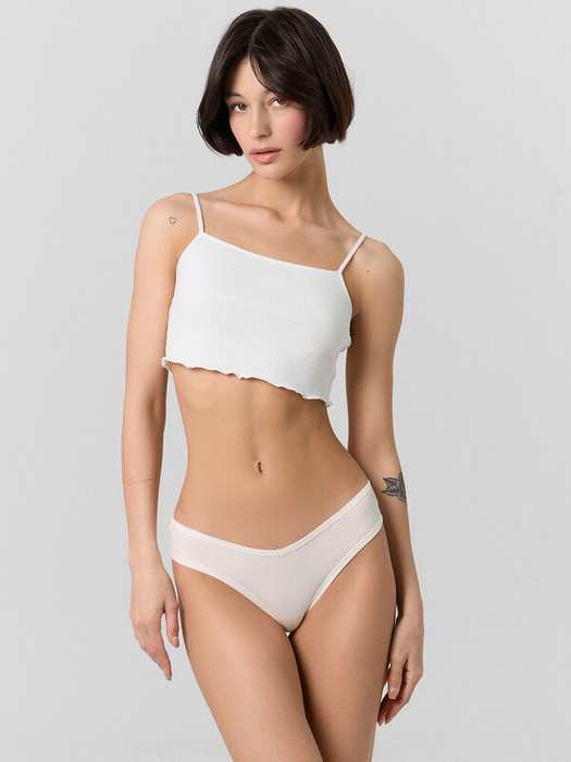 Трусы женские, средняя линия талии, силуэт - бразилиано. Передняя и задняя детали выполнены из рибаны. Верхний срез трусов обработан бейкой поперечной из рибаны, внутри жилка 6мм. Нижние срезы обработаны бейками поперечными из рибаны. Подкладка ластовицы из хлопка, отлетная по верхнему срезу. Посередине бейки по верхнему срезу передней и задней детали застрочена «птичка».