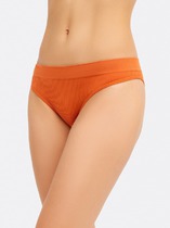 Трусы женские, средняя линия талии, силуэт - бразилиано. Передняя и задняя детали выполнены из рибаны. Верхний срез трусов обработан бейкой поперечной из рибаны, внутри жилка 6мм. Нижние срезы обработаны бейками поперечными из рибаны. Подкладка ластовицы из хлопка, отлетная по верхнему срезу. Посередине бейки по верхнему срезу передней и задней детали застрочена «птичка».