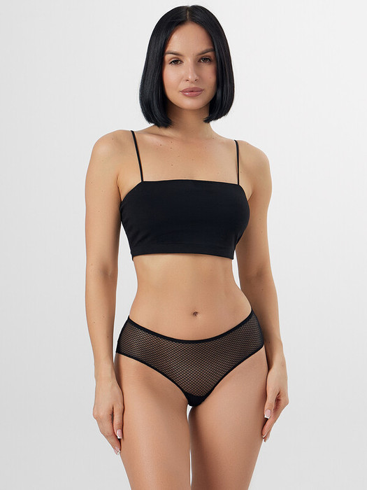 Подкладка в области ластовицы из натурального хлопка гарантирует гигиеничность и нежность к коже. Верхний срез обработан эластичной тесьмой, которая надежно фиксирует трусики, не врезаясь и не создавая дискомфорта. Нижние срезы передней части укреплены мягкой жилкой для сохранения формы и долговечности.