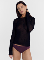 Трусы женские классического силуэта со средней посадкой из эластичной сетки. Передняя и задняя детали  цельные. Подкладка ластовицы из кулирной глади, настрочена по переднему краю. По центру к передней детали прикреплена через кольцо декоративная эластичная тесьма. Талия  и ножки обработаны  эластичной тесьмой по лицевой стороне (жилка).