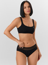 Трусы женские, средняя линия талии, силуэт-слипы. Передняя и задняя детали выполнены из интерлока. Подкладка ластовицы выполнена из кулирки, отлетная по переднему срезу. Боковые протяжки трусов выполнены из декоративной тесьмы.