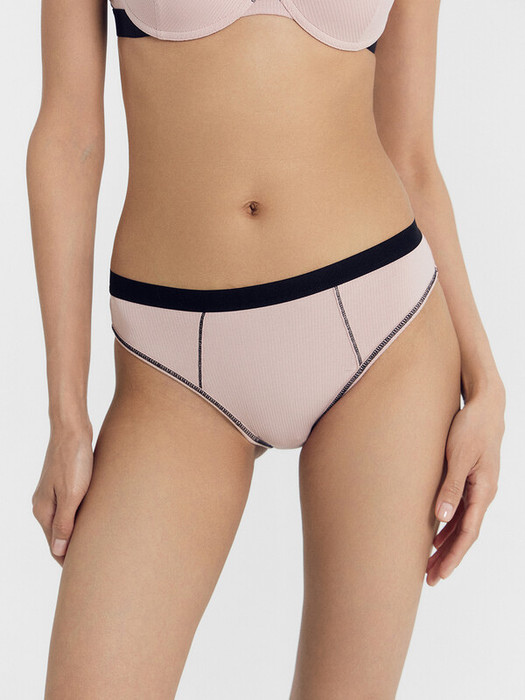 Трусы женские со средней линией талии силуэта «слип» из трикотажного полотна рибана. Передняя деталь  с  рельефами, по которым проложены  декоративные строчки. Ластовица из кулирной глади отлетная по переднему срезу.